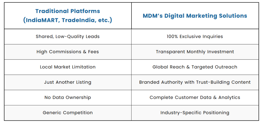 | Traditional Platforms (IndiaMART, TradeIndia, etc.) |